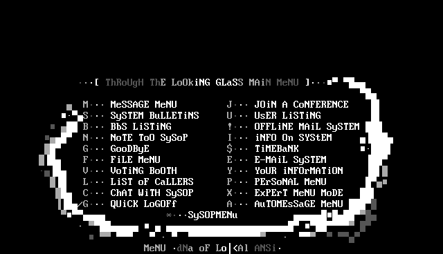 YoUR iNFOrMATiON L LiST oF CaLLERS P PErSoNAL MeNU C ChAT WiTH SySOP X
