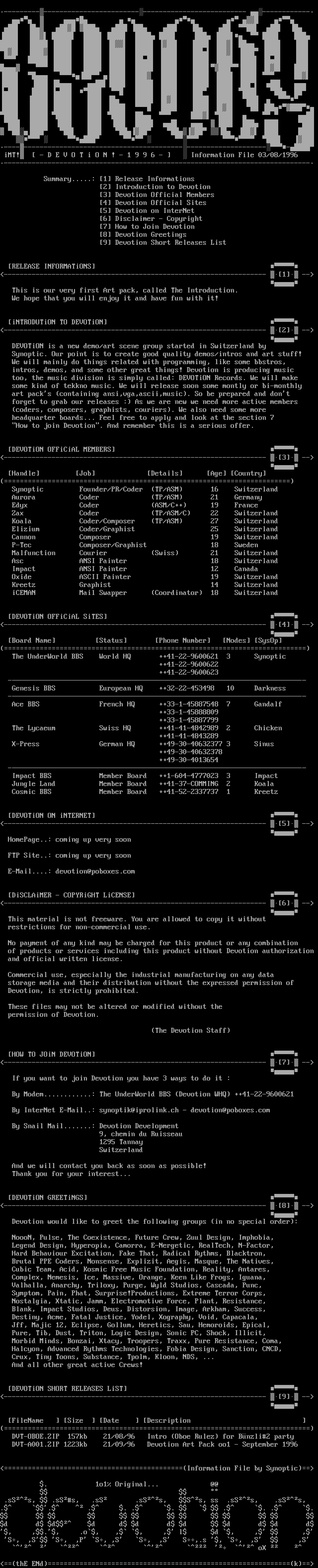 iMT! - D E V O T i O N ! - 1 9 9 6 - Information File 03/08/1996