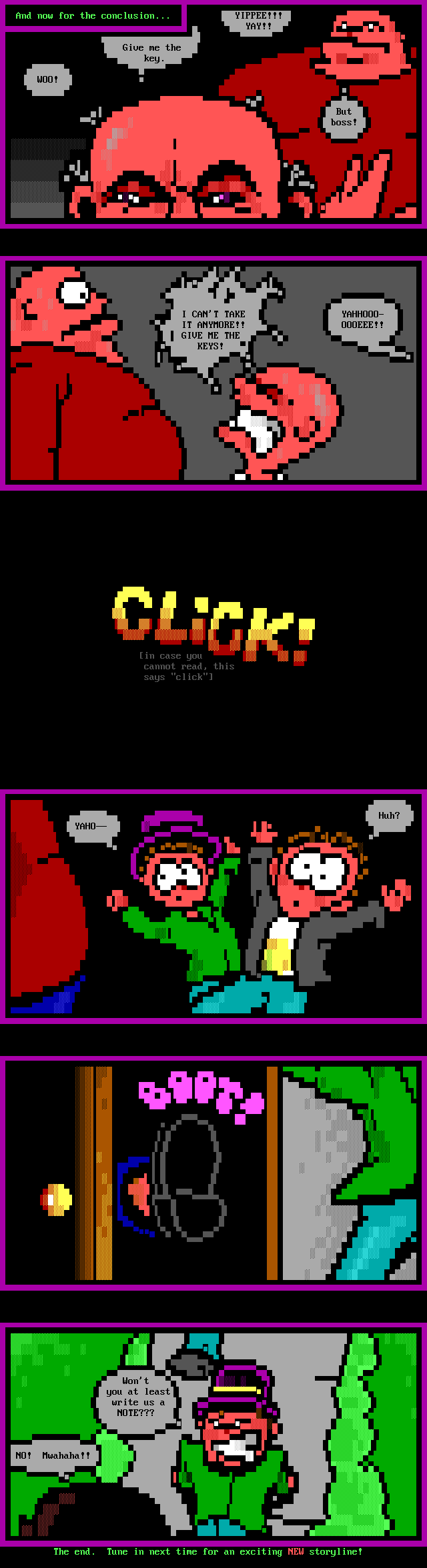 And now for the conclusion... YIPPEE!!! YAY!! Give me the key. WOO! But boss!